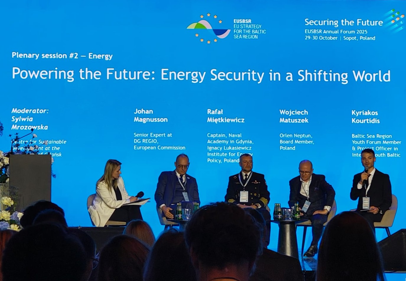One of the key sessions involved Kyriakos Kourtidis, Programme Project Officer, and member of both the Baltic Sea Region Youth Forum (BSRYF) and the working group on Energy and Transport. Kyriakos participated in an engaging panel discussion titled “Powering the Future: Energy Security in a Shifting World”, led by Mrs. Sylwia Mrozowska, Head of the Centre for Sustainable Development at the University of Gdansk. The session also featured esteemed speakers, including Mr. Johan Magnusson from DG REGIO, European Commission’s Senior Expert; Mr. Rafał Miętkiewicz from the Naval Academy in Gdynia; Ignacy Łukasiewicz Institute for Energy Policy; and Mr. Wojciech Matuszek, Board Member of ORLEN Neptun.